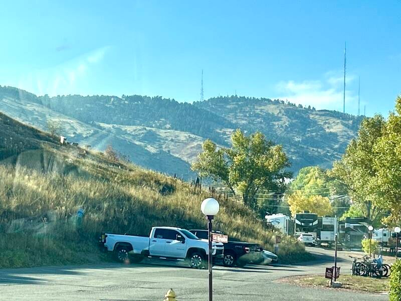 Golden is a former gold rush town located at the foothills of the Rocky Mountains. Golden is actually higher in elevation than Denver. Denver is 5,280’, where Golden is 5’675’. We chose this city as we are planning on taking a break from the road for a few days and it has numerous bike trails in the vicinity. We arrived with plenty of time to get ourselves situated and take the girls for a brief walk. The trail we took them on said to watch for rattlesnakes and stay on the trail due to open mine shafts.😳😳😳