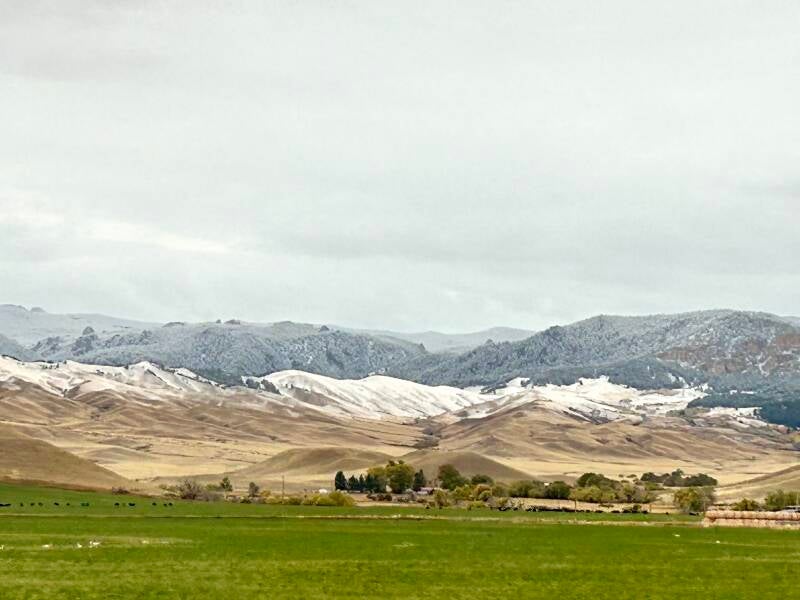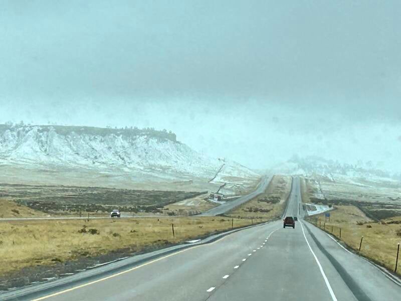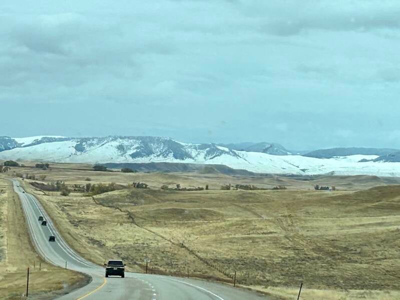 Our night in Sheridan, Wyoming was quiet but cold. We arrived when it was quite overcast and miserable. Little did we know that when we woke up Friday morning and hit the road, the mountains were right there beside the highway. Again, they were covered in snow from the storm that passed through on Thursday. The views were amazing!