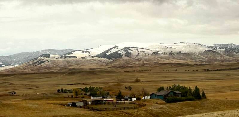 Today, we did not make a lot of stops, once we were on the road, we could see that it had snowed in the mountains overnight. It was also raining and not the best day for sightseeing as the cloud coverage was pretty low or it could be our current altitude. Livingston is at 4,502 feet in elevation. Medicine Hat's elevation was only 2,264 feet.