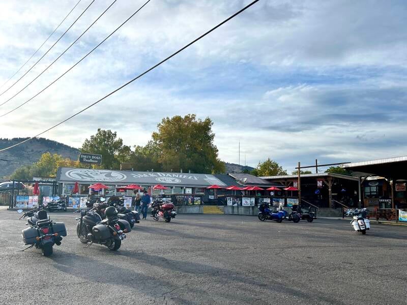 To be continued…… After reaching the bottom of the trail, Geoff and I were both thirsty so we decided to check out the bar across the road from the RV park. It is called Dirty Dogs Roadhouse and according to their advertising they are Colorado's #1 Biker Bar. This was clearly evident by the number of bikes in the parking lot at any given time. I managed to snap a photo of two bikes, his and hers (there are a large number of women riding bikes here) and their backseat passengers,