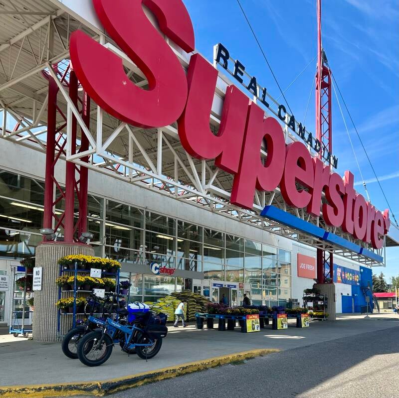 Today though was our first time going to get groceries on our bikes! To get to the Real Canadian Superstore we had to go about 8km one way. We were able to take the bike path for a good part of the way and then a few side streets. One of these streets brought us right past a bike store where we bought a mirror for me. Across the street was a German Deli/butcher where we bought some rancher sausages and chorizo sausages. The bike store was kind enough to install my mirror for us which gave us the time to shop at the deli.