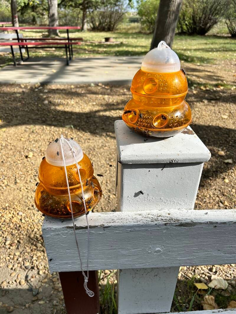 The first picture below is of a buck that walked behind our coach this morning. Unfortunately I couldn't get a better picture. I have also included a picture of the wasps we have been collecting! This picture is after a couple of hours. By the end of the day the catchers could not hold any more and Geoff had to shoo them away. He told them he would have more room for them tomorrow! 😂The other ones are of Geoff's ride today and our views when we take the girls to the fenced in play area. The very last one is our lot with our fire!