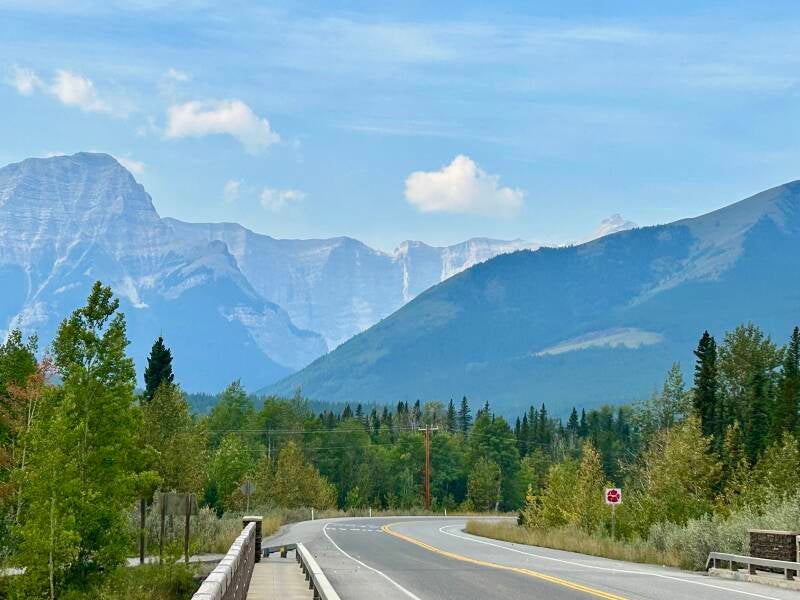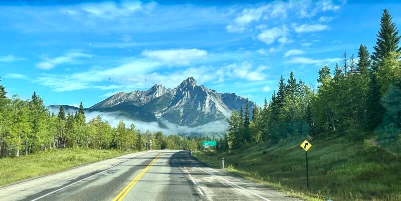We stopped at a Real Canadian Superstore, which had a few restaurants in the same plaza and caught up with some old friends, Denise and Mario. It was wonderful to see them after 15 years. Facebook is good but in person is so much better! Time flew by talking about what each of us has been up to over the years and before we knew it, it was time for us to go. We took a few pictures, hugged and said our goodbyes. After a quick grocery run, we continued west. Before we even left highway 201, you could see the mountains, for the first time, off in the distance.